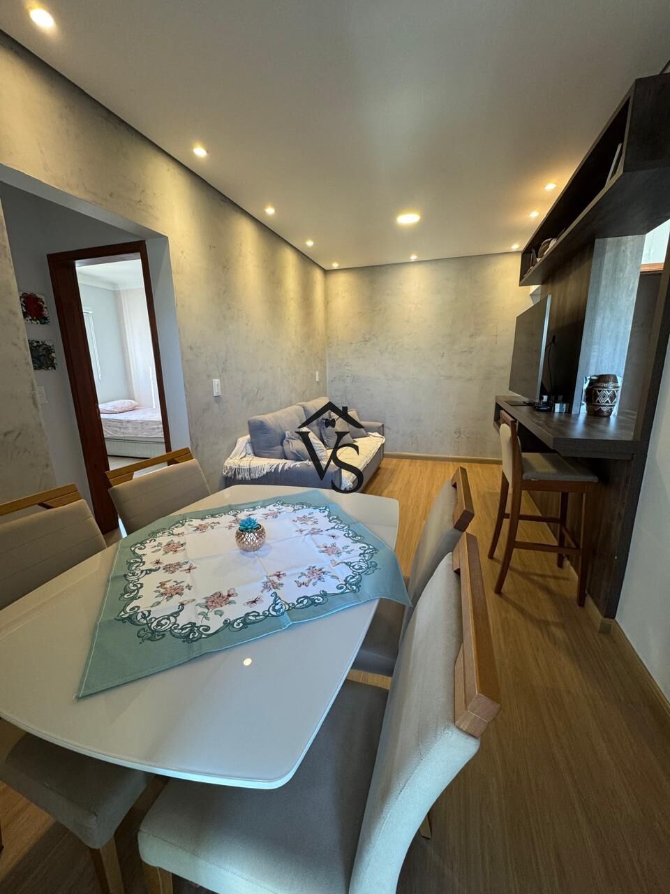 2 Dormitórios, sendo 1 suíte1 Banheiro2 VagasGaragem Coberta1 Sala de TV1 Sala de jantar