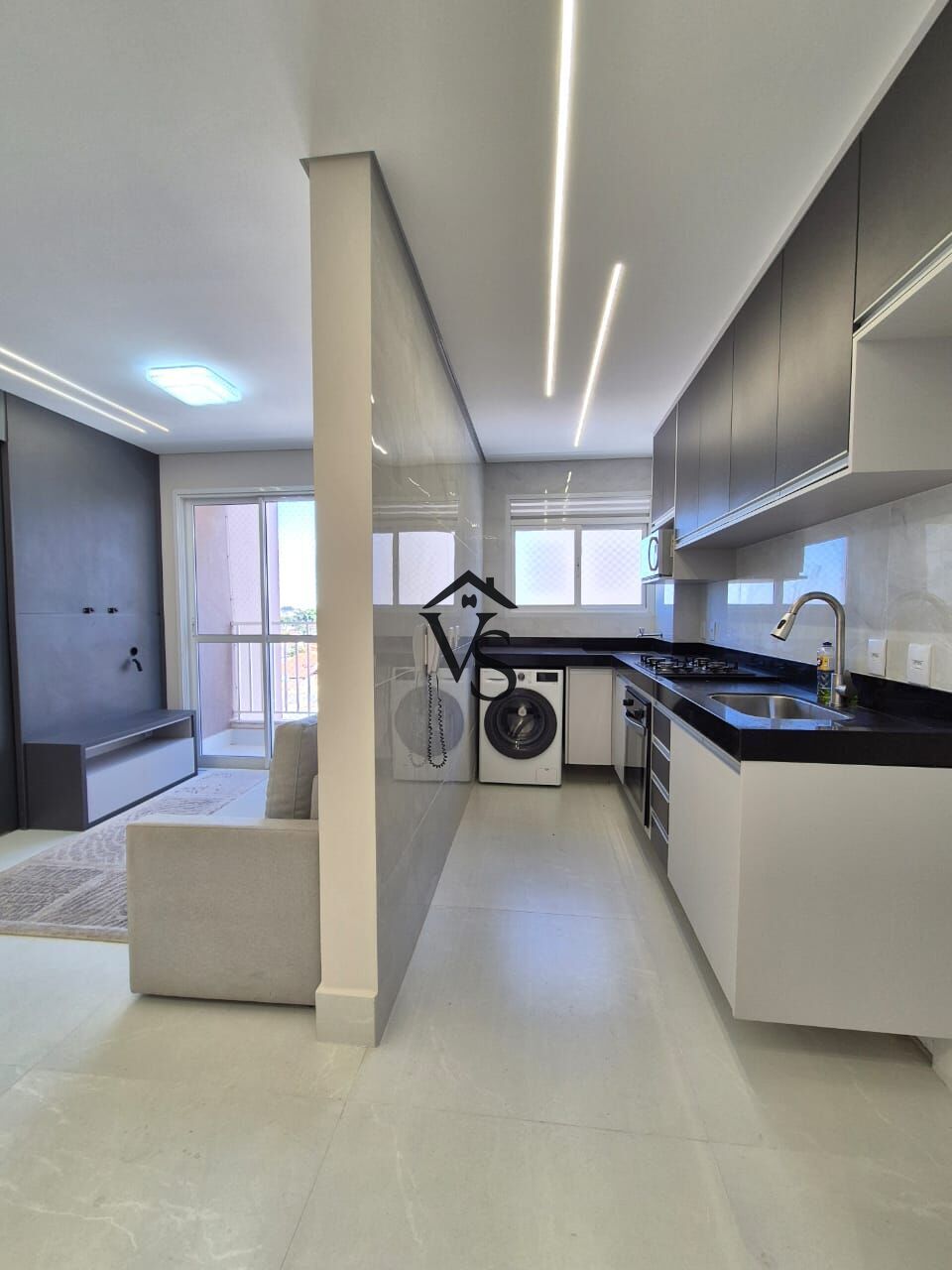 - cozinha planejada e equipada com forno, fogão, micro-ondas e lava roupa