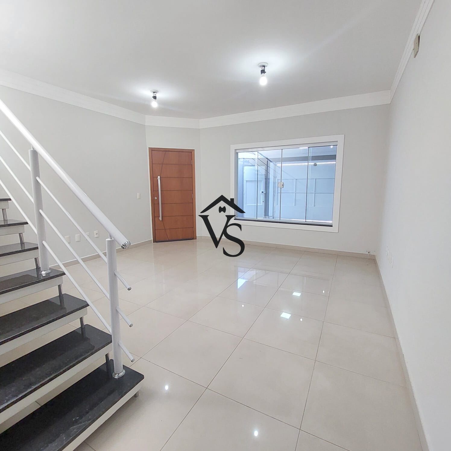 Casa térrea com mezanino, acabamento em porcelanato e laminado.