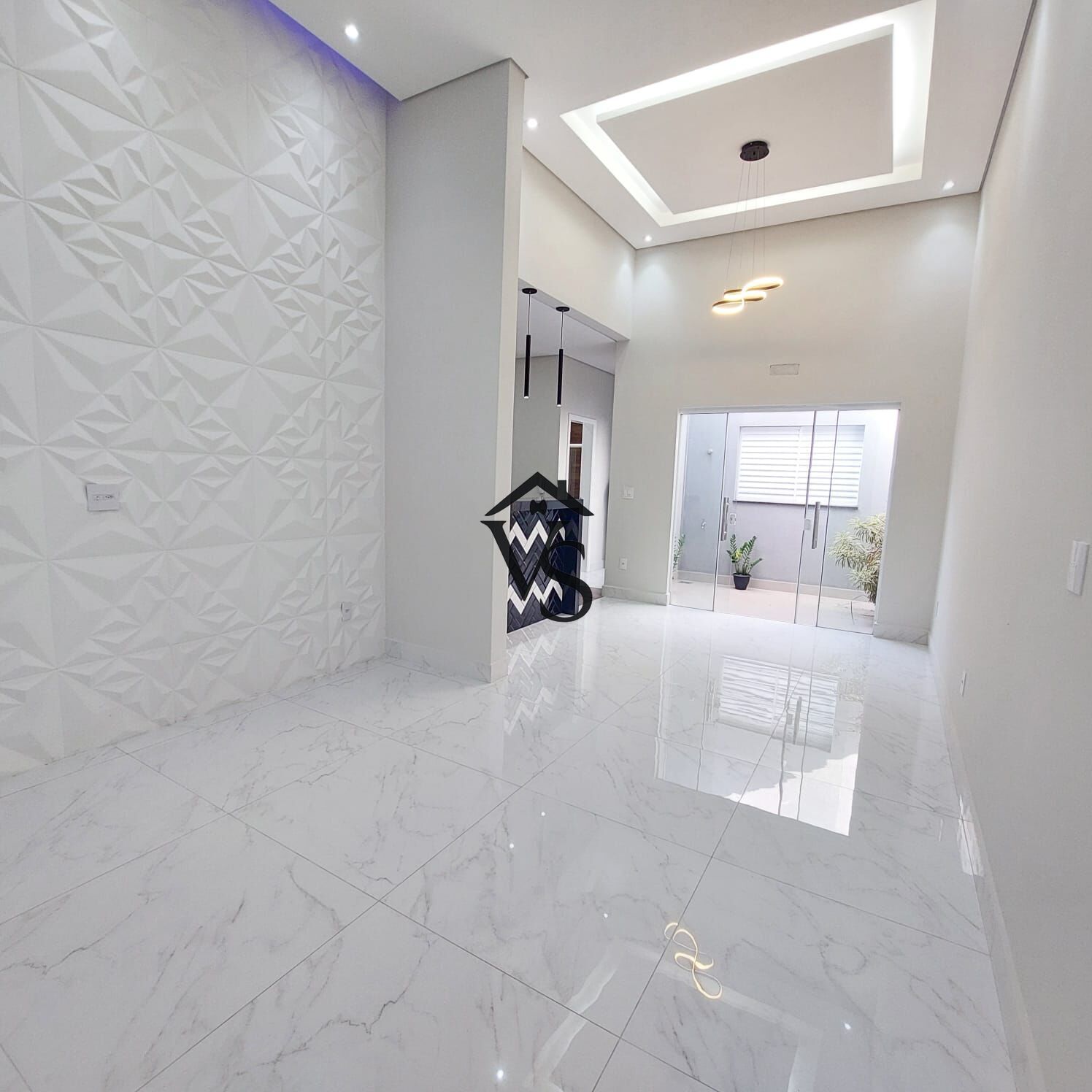 Casa térrea, fino acabamento, toda em porcelanato pé direto alto, iluminação em led.