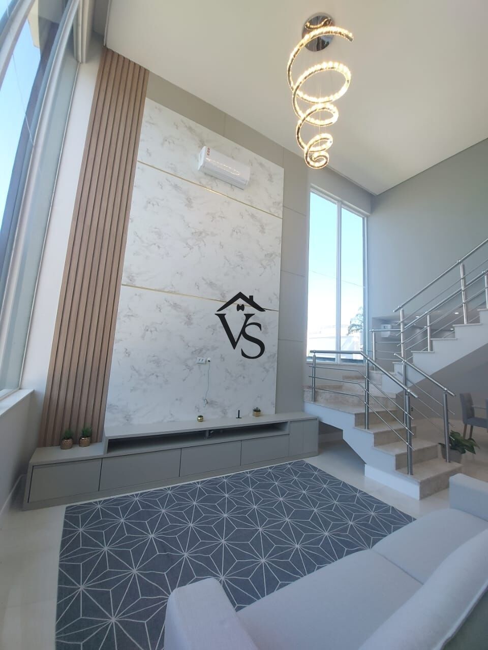 - salas integradas com pé direito alto