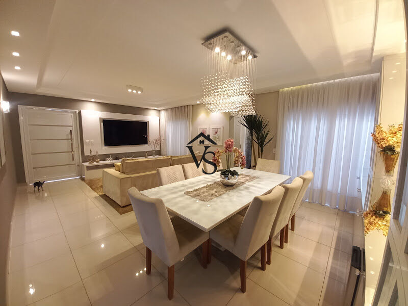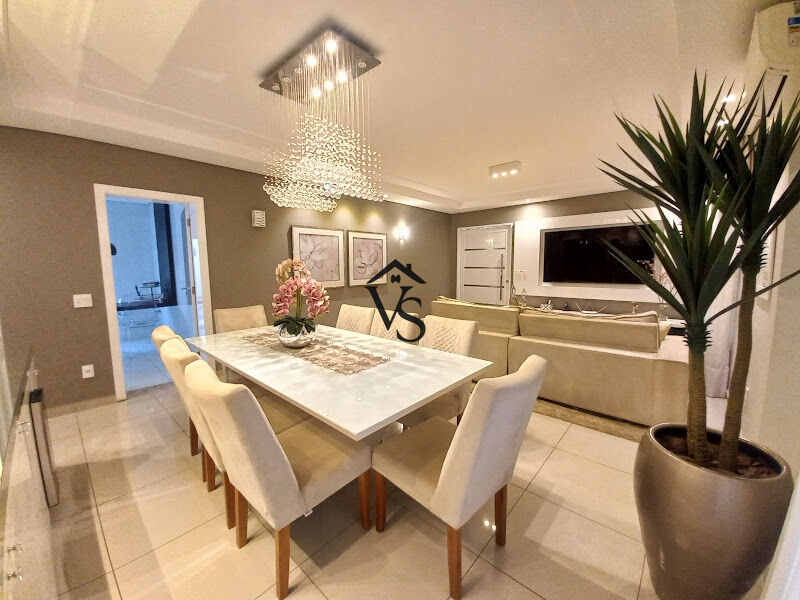 Constituída por 2 dormitórios sendo 1 suíte master com closet (podendo ser revertida para o 3°dormitório), banheiro social, roupeiro, ampla sala 2 ambientes climatizadas, lustres, mesa de jantar com 8 lugares, lavabo, cozinha planejada com cooktop, ar depurador, micro-ondas, forno elétrico, geladeira e lava-louças, lavanderia com armários, nos fundos, possui um excelente espaço gourmet, muito aconchegante com churrasqueira, banheiro externo, piscina aquecida com cascata e quarto despejo.