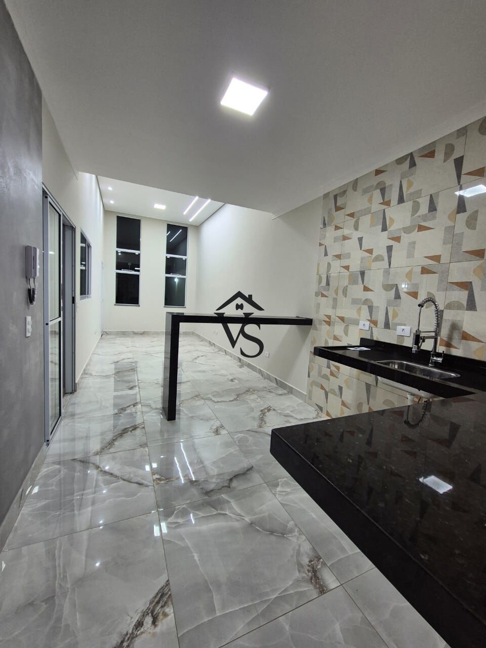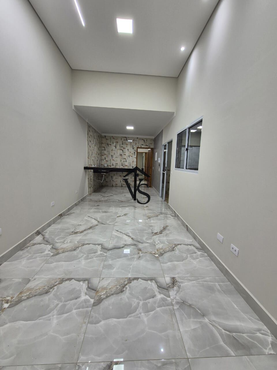 Casa nova, toda em porcelanato, pé direito duplo.