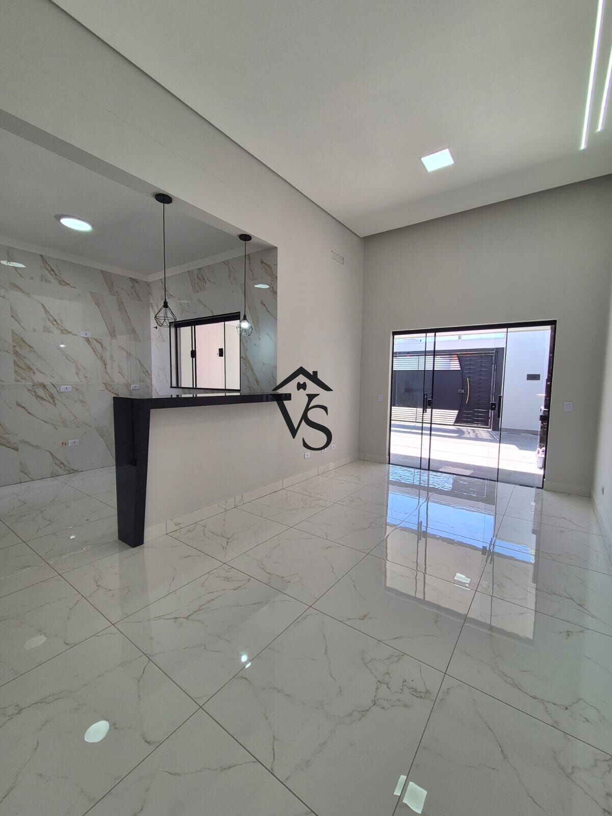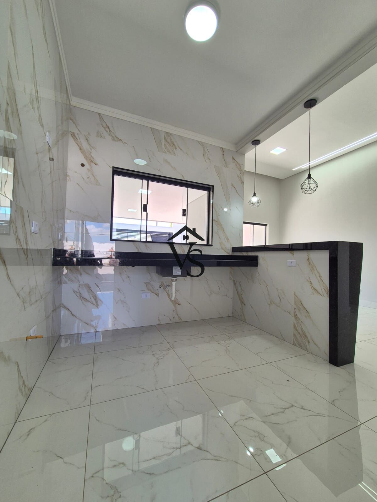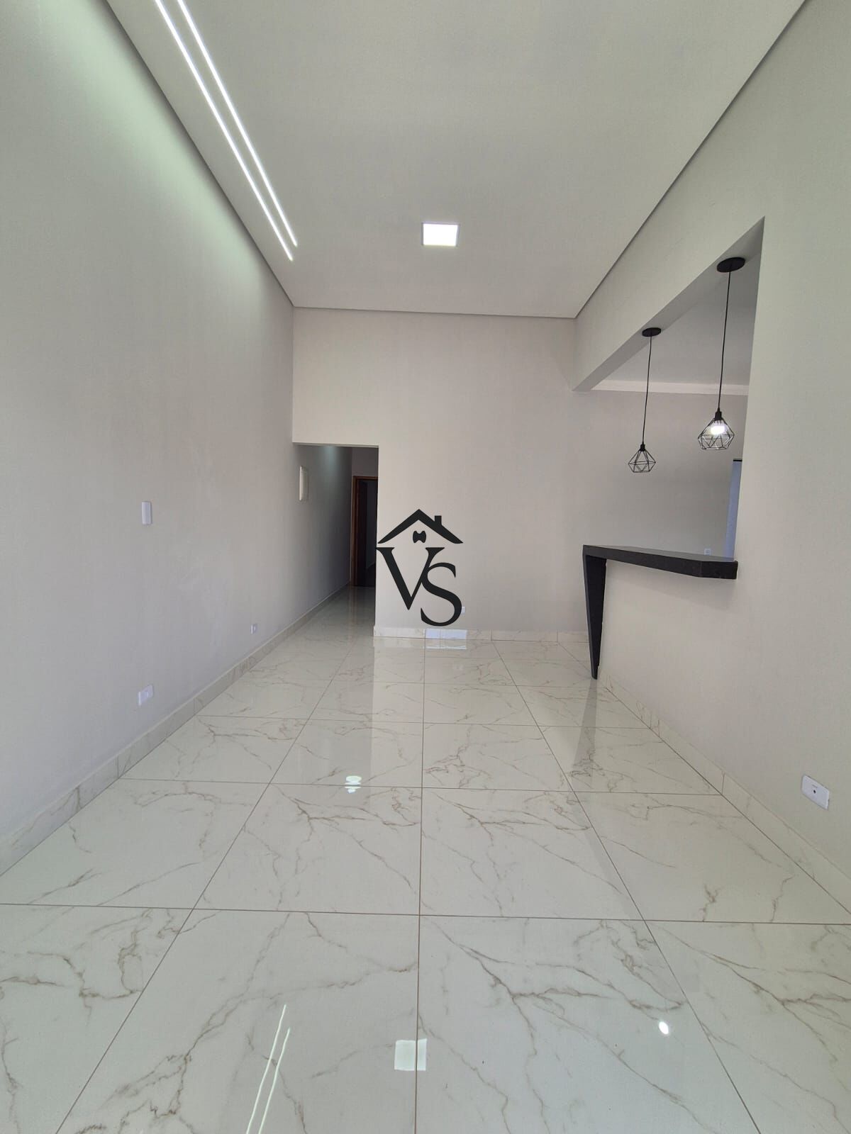 Casa térrea com espaço nos fundos. Pé direito duplo na área social, garagem gourmet para 2 carros.