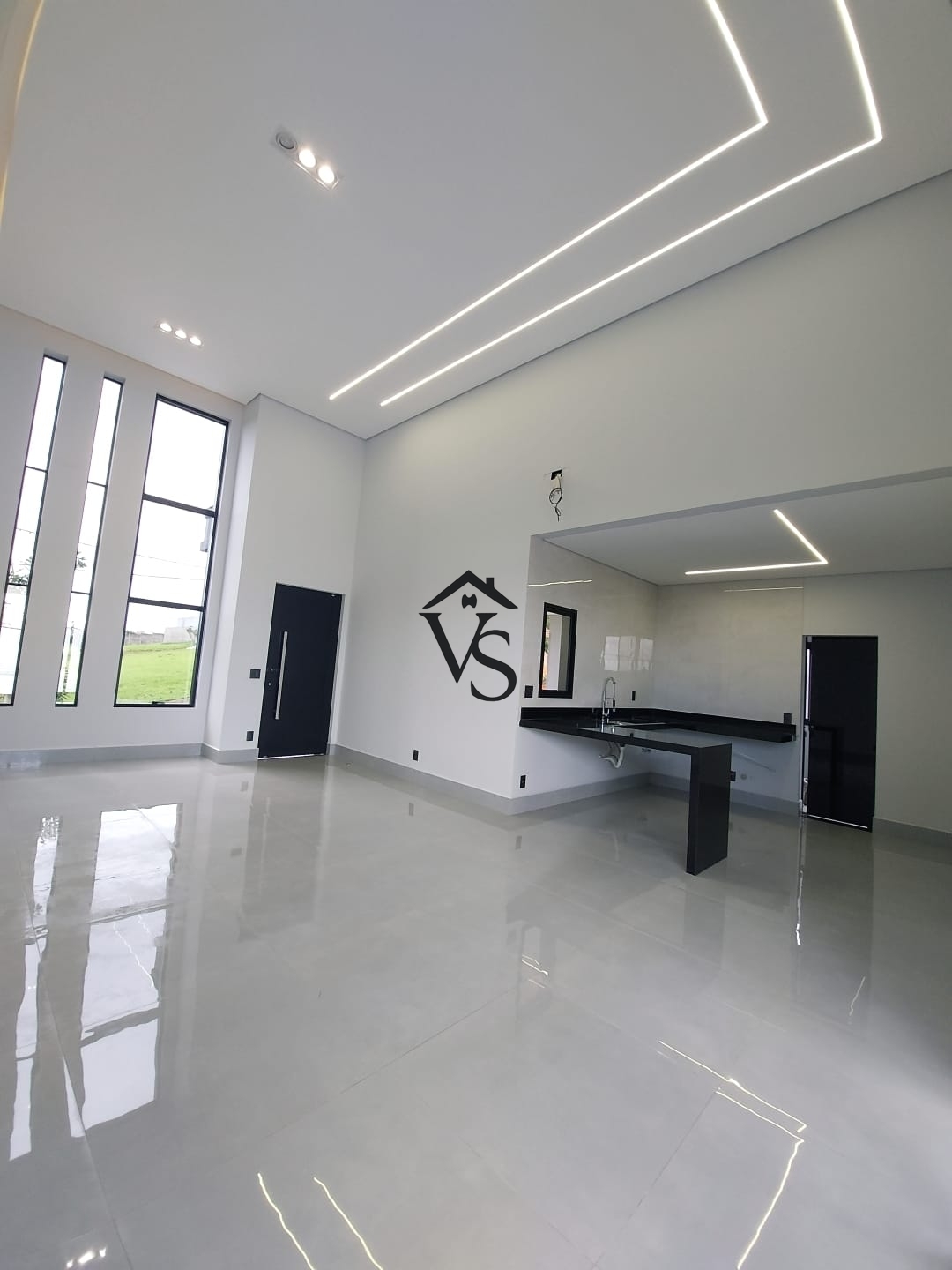 - salas integradas pé direito alto com iluminação em led