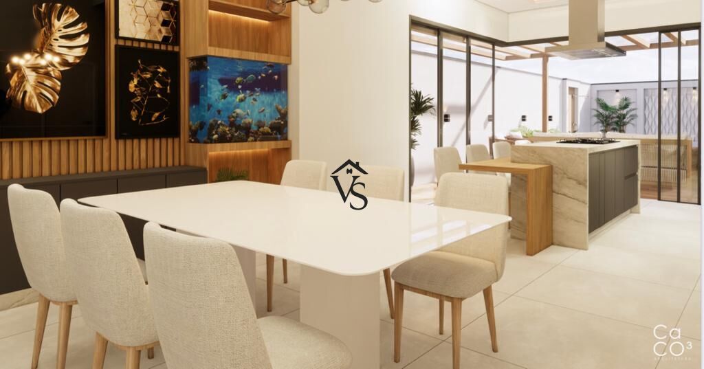 - sala de jantar e cozinha conceito aberto, integrando toda visão para área da piscina que é aquecida